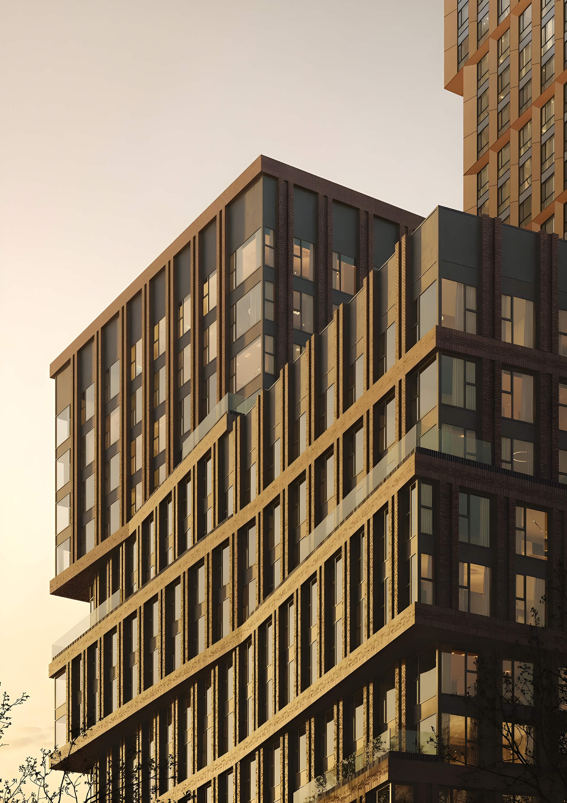 Архитектурная концепция жилого комплекса разработана одним из ведущих российских архитектурных бюро, что заметно в каждом элементе облика зданий. Три башни комплекса создают динамичную композицию, визуально напоминающую стопку книг, которая стала ключевой идеей проекта. Такая архитектура не только выделяет комплекс среди застройки, но и формирует уникальный силуэт, в котором сочетаются вертикальный ритм, выразительные линии и строгая геометрия. Фасады выполнены из качественных материалов, что обеспечивает долговечность и эстетическую выразительность.