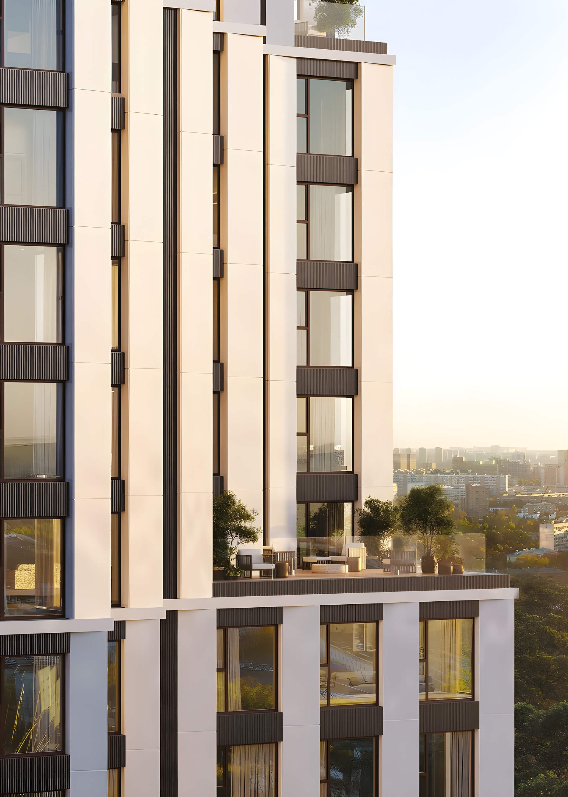 Панорамное остекление играет важную роль в архитектурной идее. Оно обеспечивает естественное освещение в квартирах, открывает виды на город и подчёркивает современность зданий. Оптическая лёгкость башен создаёт впечатление эксклюзивности и премиального уровня, а уникальные фасадные решения формируют визуальный код комплекса, узнаваемый и современный. Высотная архитектура «Ракурса» также подчёркивает стремление к вертикальному развитию и динамике, что идеально вписывается в философию проекта.