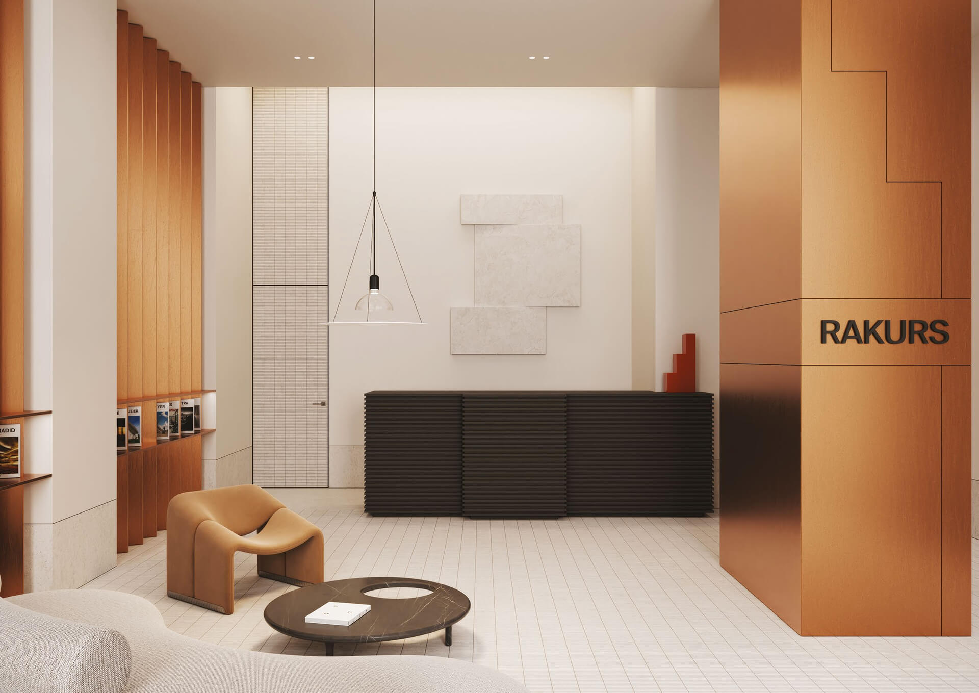 Лобби в жилом комплексе «Ракурс» создают первое впечатление о проекте и задают высокие стандарты качества для всех внутренних пространств. Интерьеры выполнены в стиле современной минималистичной архитектуры, с использованием природных материалов и спокойных оттенков, создающих атмосферу уюта и гармонии. Высокие потолки, панорамные витражи и просторные холлы формируют ощущение лёгкости, благородства и премиального уровня, характерного для домов бизнес-класса.